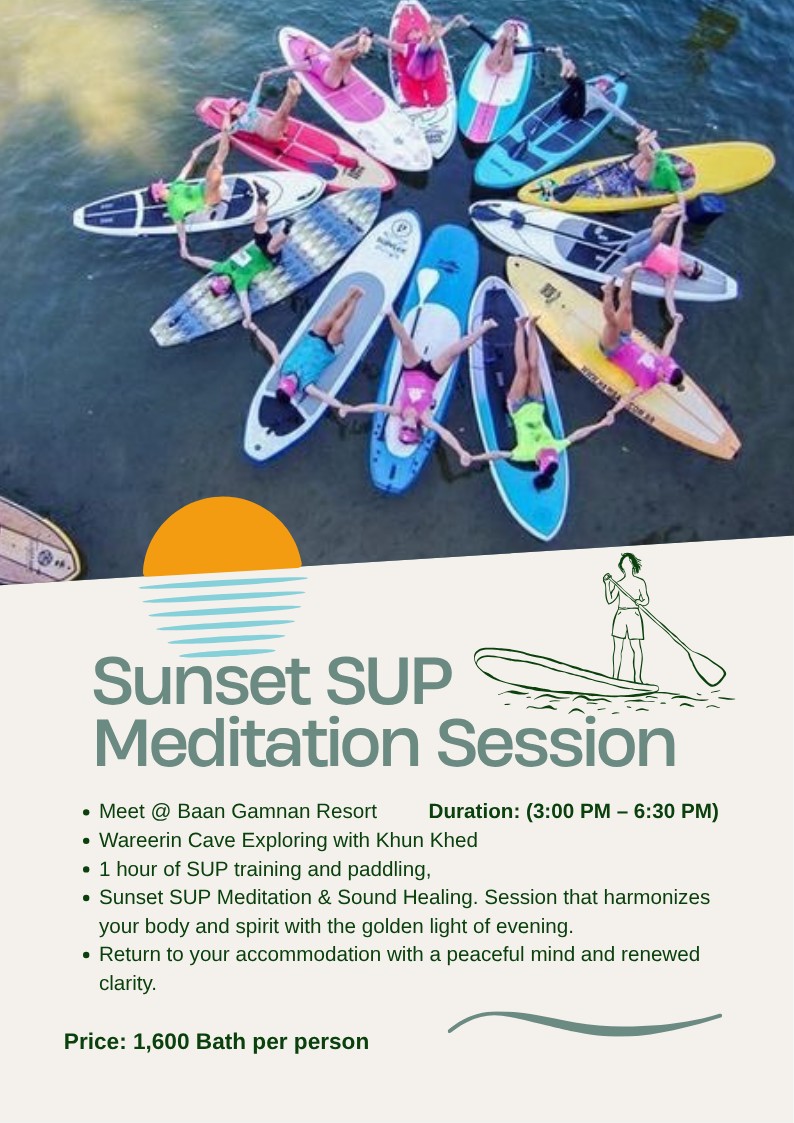 - Sunset SUP Meditation & Sound Healing. Session that harmonizes your body and spirit with the golden light of evening.