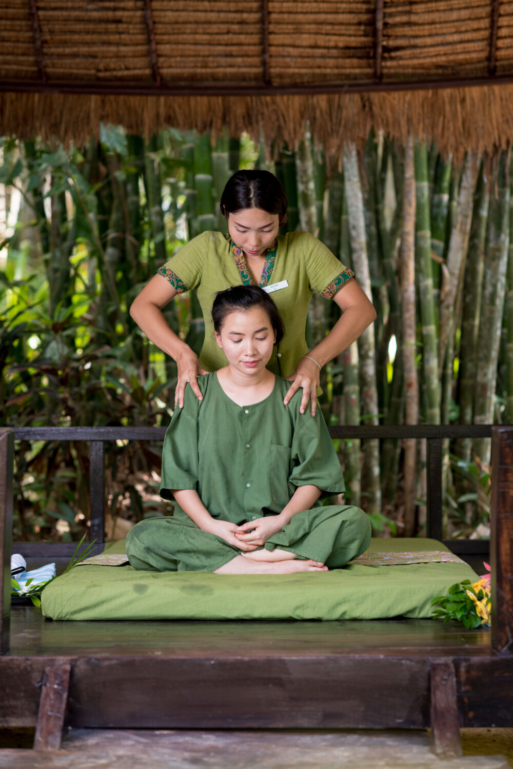 The experience continues with a Thai meridian point massage, a deeply relaxing treatment that targets energy lines in the body, promoting both physical and mental wellbeing.